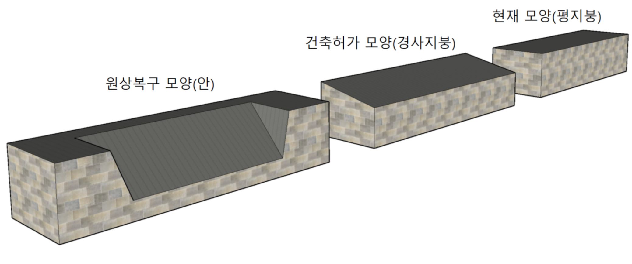막상 원상복구를 하자니 다락의 외벽이 모두 콘크리트 구조로 되어 있어, 본래의 모양대로 복구를 하는데 여러가지로 부담이 되고 있습니다.