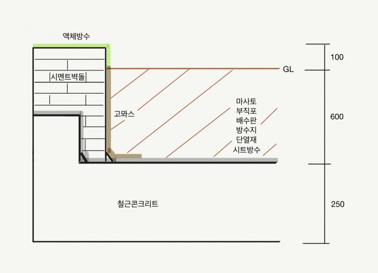 설계시엔 콘크리트 마감이었으나 바닥 높이 문제로 인하여 600mm를 높이다 보니
