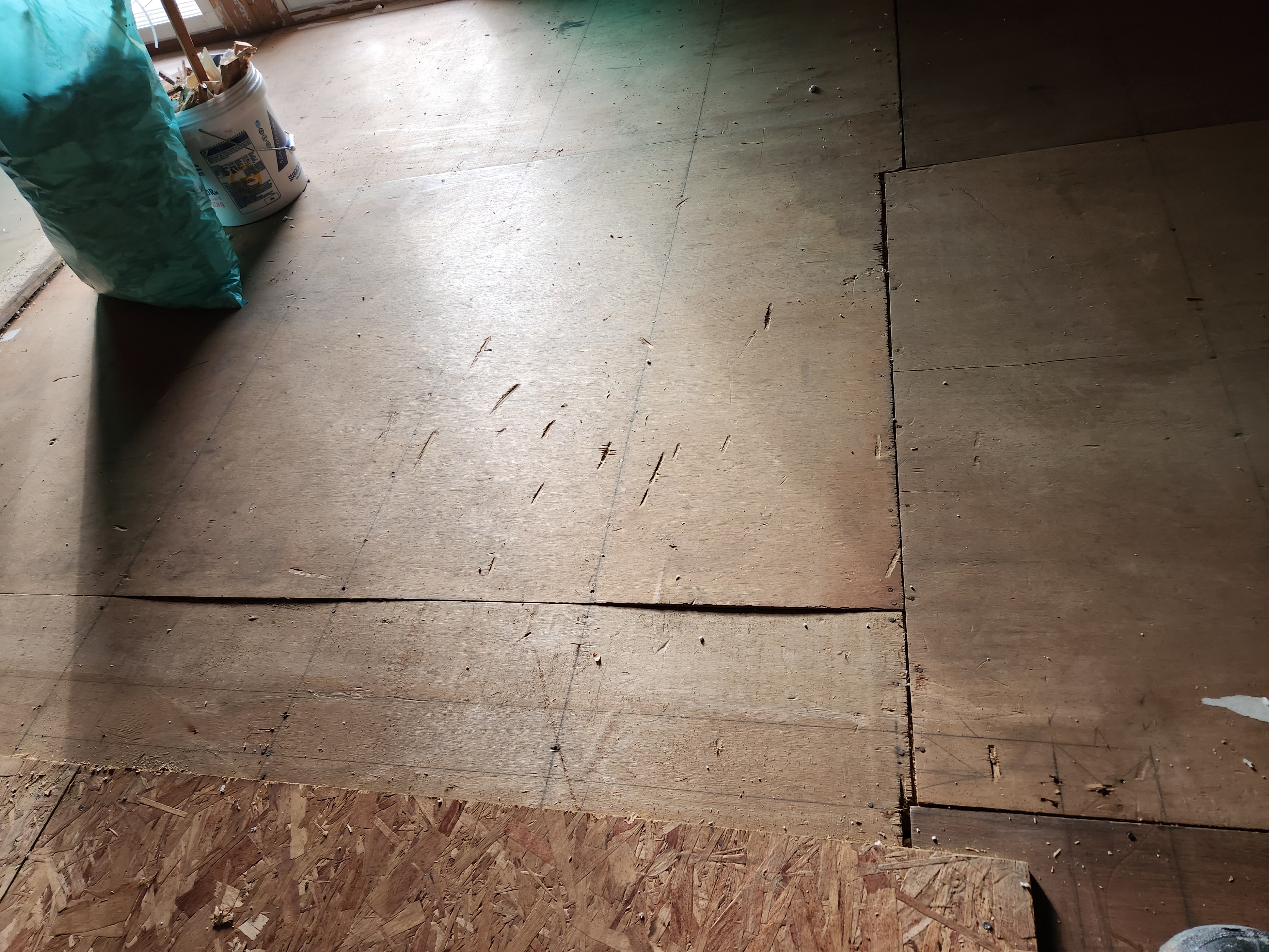 바닥 장판을 들어내니 합판으로 이루어져 있습니다.