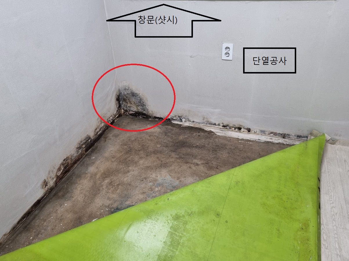 바쁘신중에도 지나치지않고 답변주셔서 대단히 고맙습니다. 별도로 외벽부분 단열공사를 했음에도 동일한 위치(동그라미 표시부분)에 곰팡이가 발생했는데(첨부사진은 과거사진이고 위 두 번째 사진은 현재사진임) 단열이 잘 안되고 있는 것 같은데 어떻게 처리해야할지요?