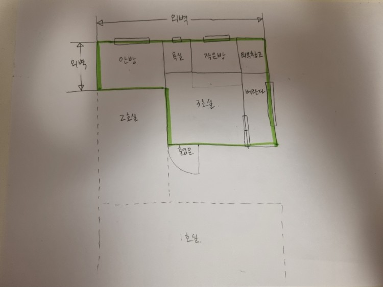 2. 코너부분에 붙박이장같은 벽에  딱 붙는 가구를 설치했을때입니다.