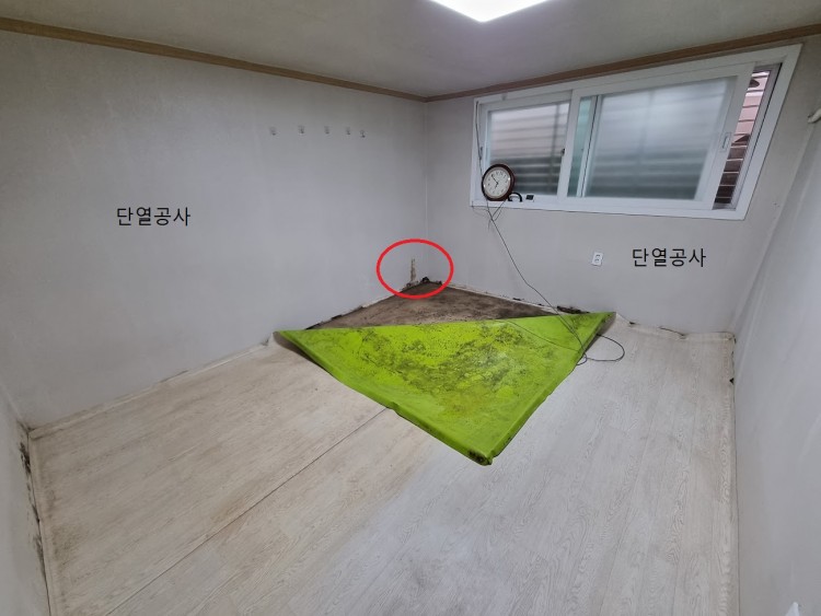 특히바닥에 스티로폼이 깔려 있으므로 물을 많이 머금고 있어서 바닥의 물이 더 안마를 수 있으므로 바닥을 들어내는 공사가 필요하다고 합니다.