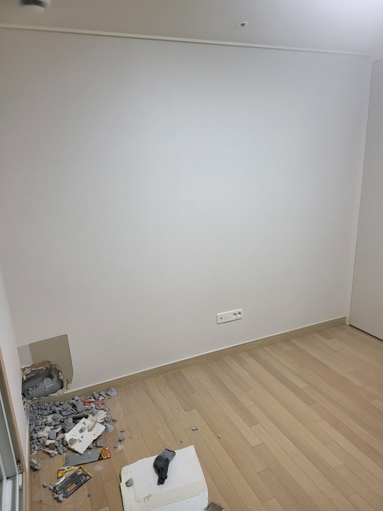 문제는 붙박이장 측면이 시공 예정인 외벽에 맞닿아 있다는 점인데 아파트 입주시부터 설치되어있던 붙박이장이라 탈거 후 원복재설치에 어려움이 있다고 합니다.