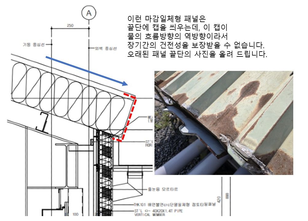 다. 지붕도 마감일체형 패널로 보이는데, 이 역시 주택은 아니라서 밤에 비가 치는 소리가 문제가 되지 않겠지만, 장기적 건전성을 위해서 통기층이 있는 지붕 형식을 권장드립니다. 다만 이 모든 것이 다 돈이라서, 아래 글을 보시면 판단하시는 것이 좋을 것 같습니다.