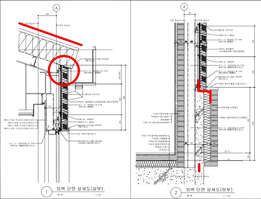 나. 여기에 더해서 패널 형식이라면 조인트의 누수도 쉽게 발생을 합니다. 다행히 용도가 주택이 아니라 잠을 자지는 않기에, 큰 문제가 되지는 않겠지만.. 조인트의 기밀처림에 대한 것도 협의가 필요합니다.