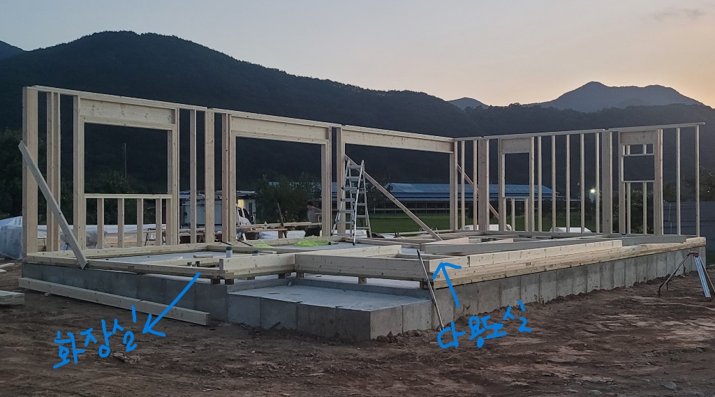 참고로 기초 콘크리트 칠때 시공사 사장이 와서 했는데 화장실 다운틀 안했습니다.