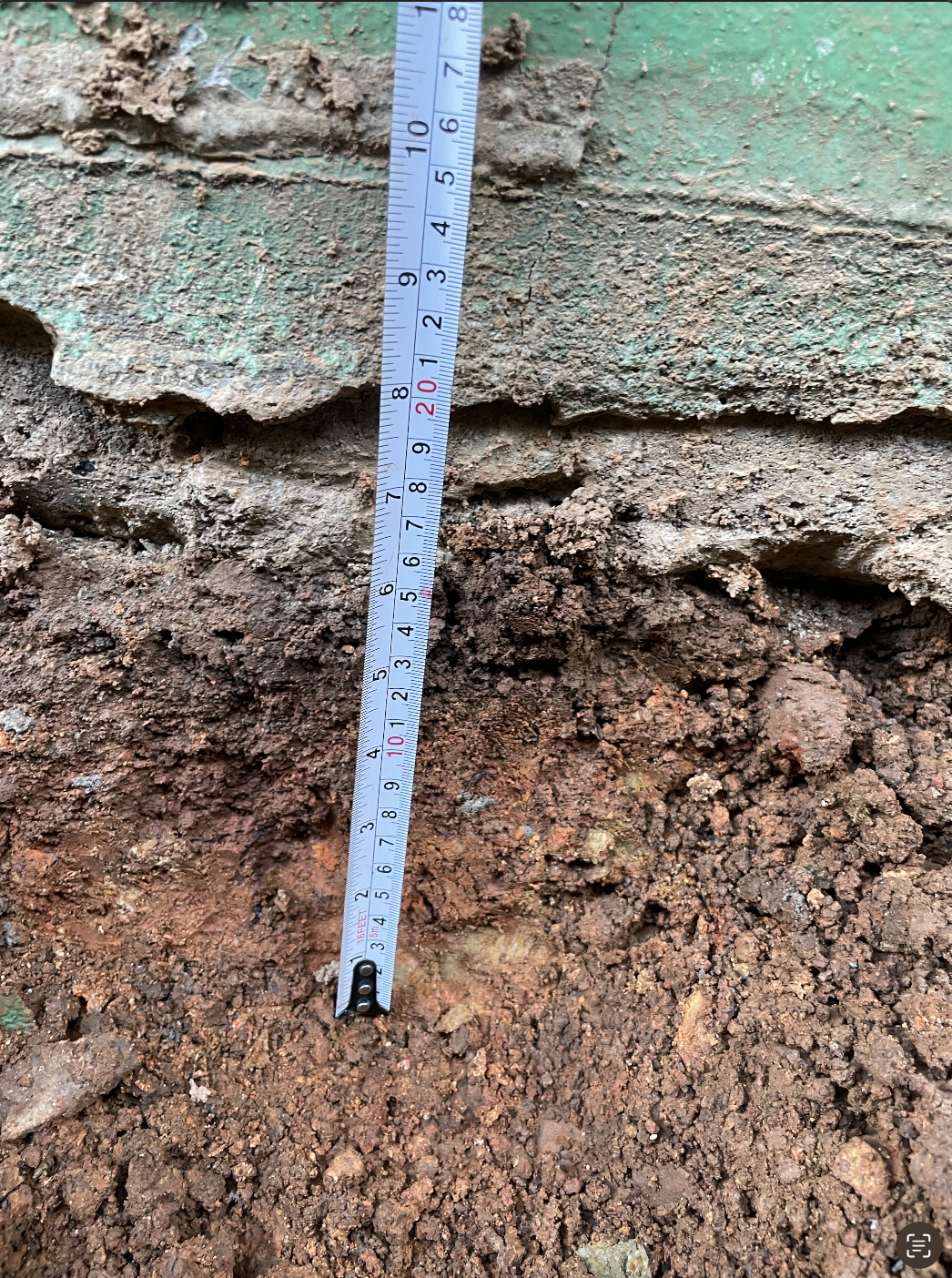 흙을 간단하게 파낸 후 자를 대고 찍어봤습니다.