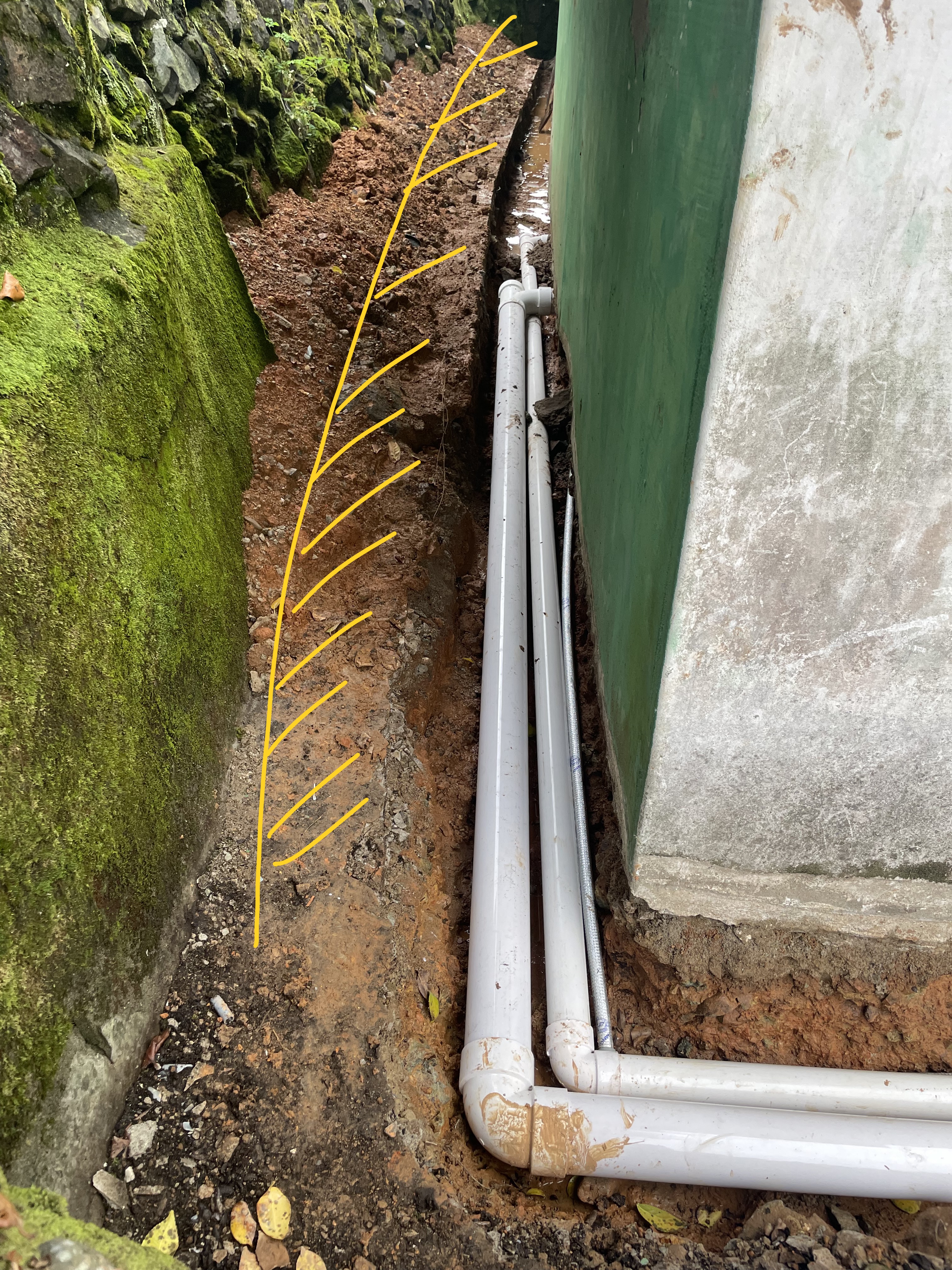 땅을 더 파내고 배수를 위한 유공관 작업을 해야했었습니다.