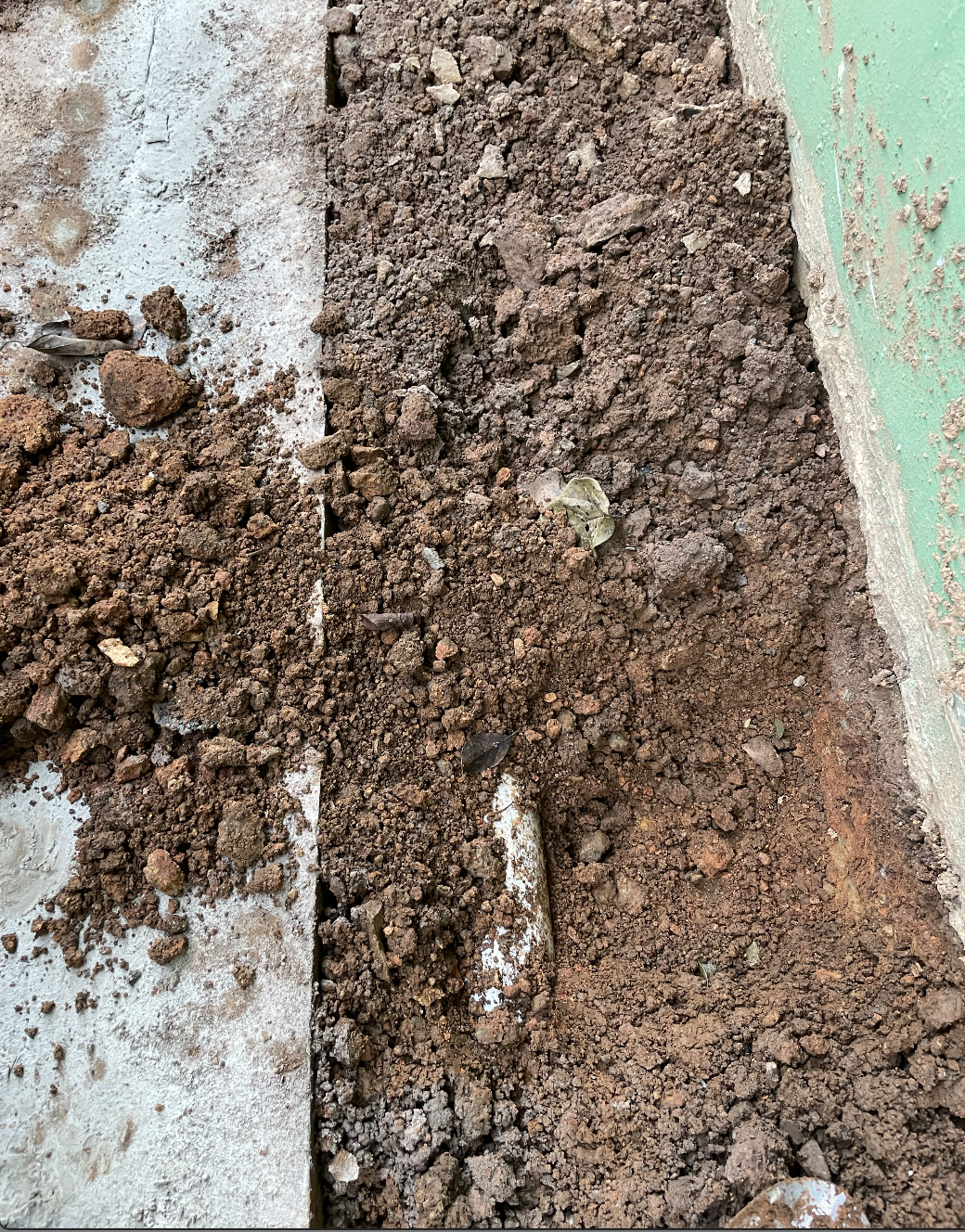 벽체와 붙어있는 배수관이 묻혀있는 흙바닥은 파낸 다음 쇄석을 채우려고 하고 있습니다
