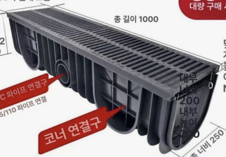 2. 사진으로 올려 주신 U형 측구를 사용하셔도 되기 하나, 언급하신 것처럼 흙의 높이가 1층 바닥 보다 높아서 생긴 일이니.. 측구만으로는 해결되지 않습니다.