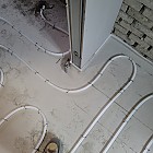 욕실입니다. 기존 바닥면이 너무더러워서 무기질탄성도막 올렸었습니다. 코너는 부직포 댓구요. 레미탈 넣어서 구배잡고 물좀 많이 넣어서 미장칼로 시아기 하니깐 일반 미장면처럼 반듯하게 나왔습니다. 유기계탄성도막 올리고 타일 붙여도 될까요 의미 없는 작업일까요