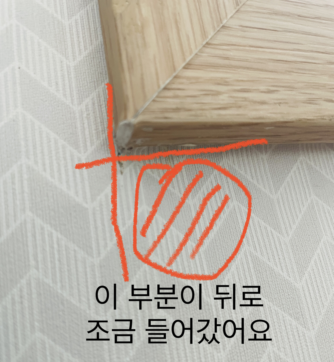 보수 안 해주려 하시다가...창틀 아래 모서리는 4-5mm이상 단차가 있어서 이건 오차범위가 아닌것 같고 실크벽지라 눈에 띄지 않는것뿐이라고..부분적으로라도 보수해 주시면 좋겠다 말씀드리니 그럼 해 주겠다시더라구요