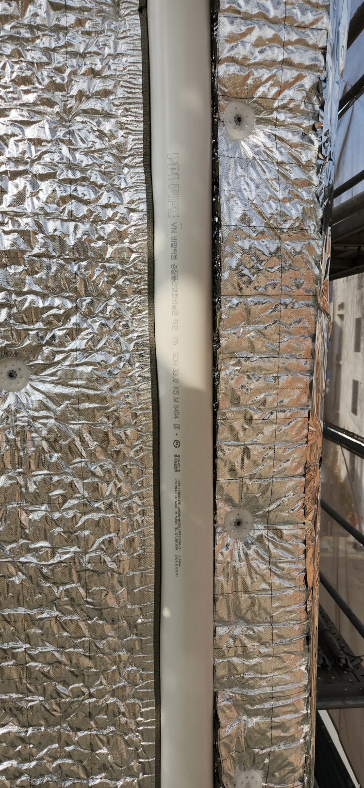 단열은 배관위로 덧대어서 보완하기로 했구요. 단열재는 준불연이 맞다고 합니다.