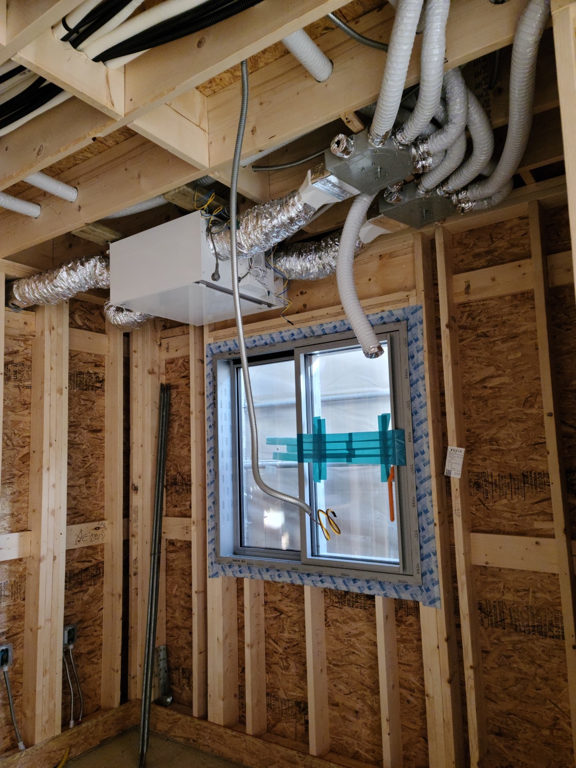 좌쪽에 있는 전열교환기가 수직배관을 타고 집의 좌측을, 우쪽에 있는 전열교환기가 우측을 담당하는 셈이지요.