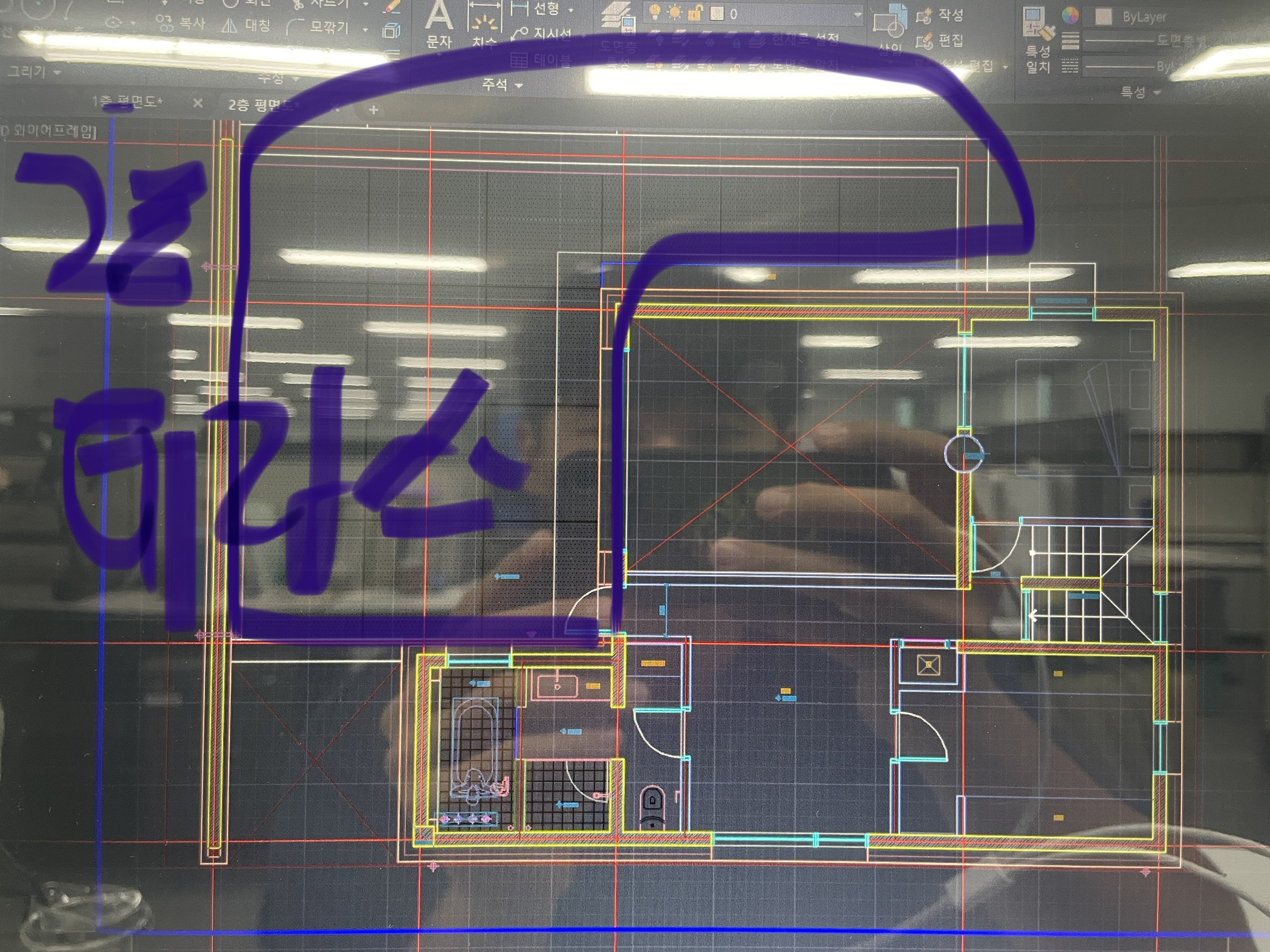 혹시 누수가 생기는 곳이 1층 천장이라면, 1층, 2층 평면도에 누수 위치를 표시해서 올려 주실 수 있으실까요?