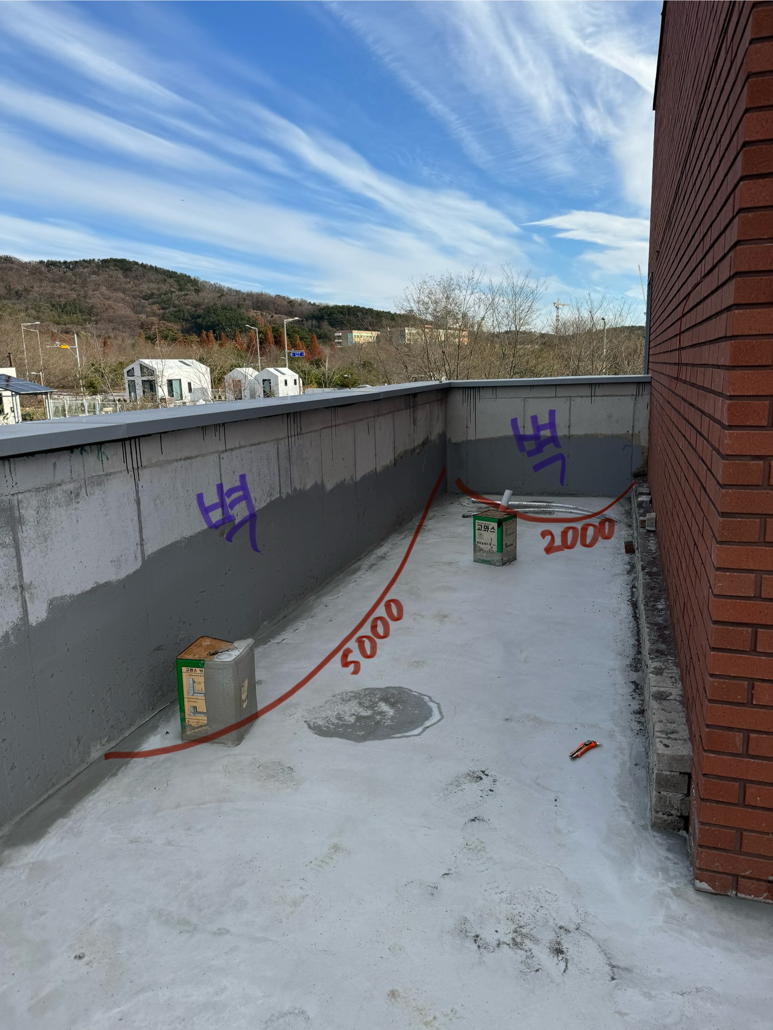 테라스 찍어서 올려 주신 사진 중에 벽 하단에 시멘트 벽돌로 몇 단 쌓아 놓은게 있는데요. 그게 무엇인지 궁금하구요. 그리고 방수 공사를 먼저 한 다음에 그것을 쌓았는지도 궁금합니다.