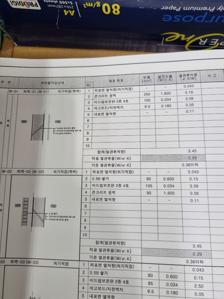측벽은 비드법2종4호 105mm, 내벽의 경우에는 비드법2종4호 85mm를 사용하였다고 기록되어져 있습니다