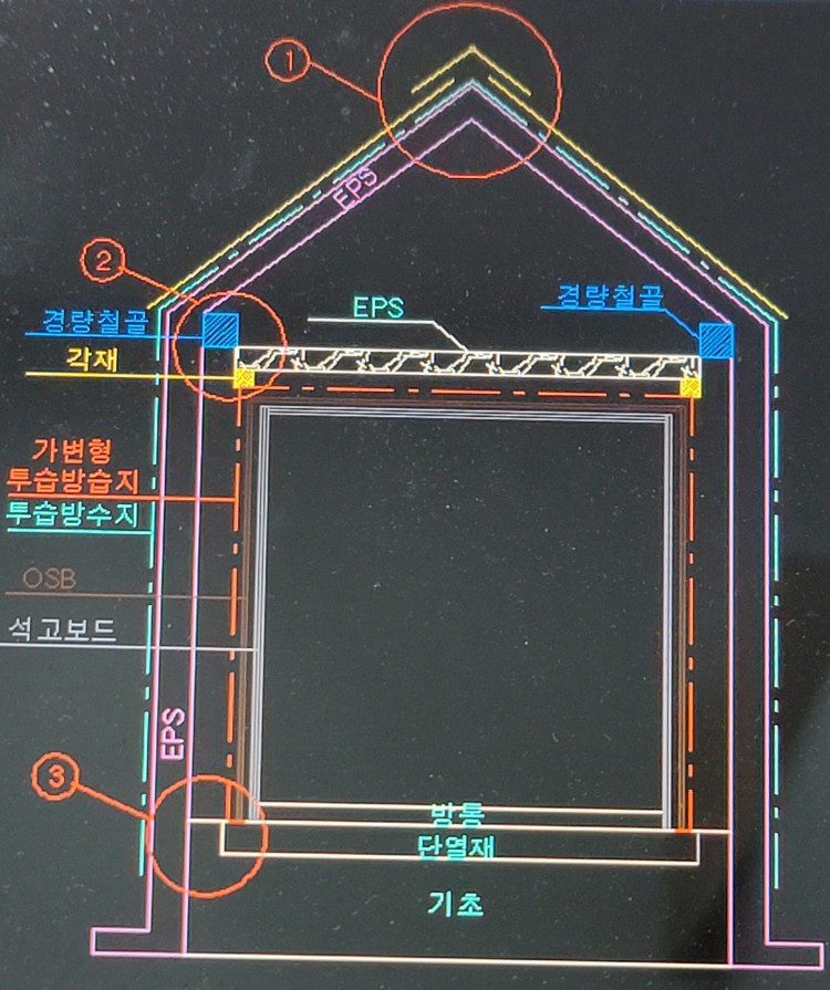또한 EPS 단열재 위에 투습방수지도 구성에 따라서 제외할 수도 있습니다.