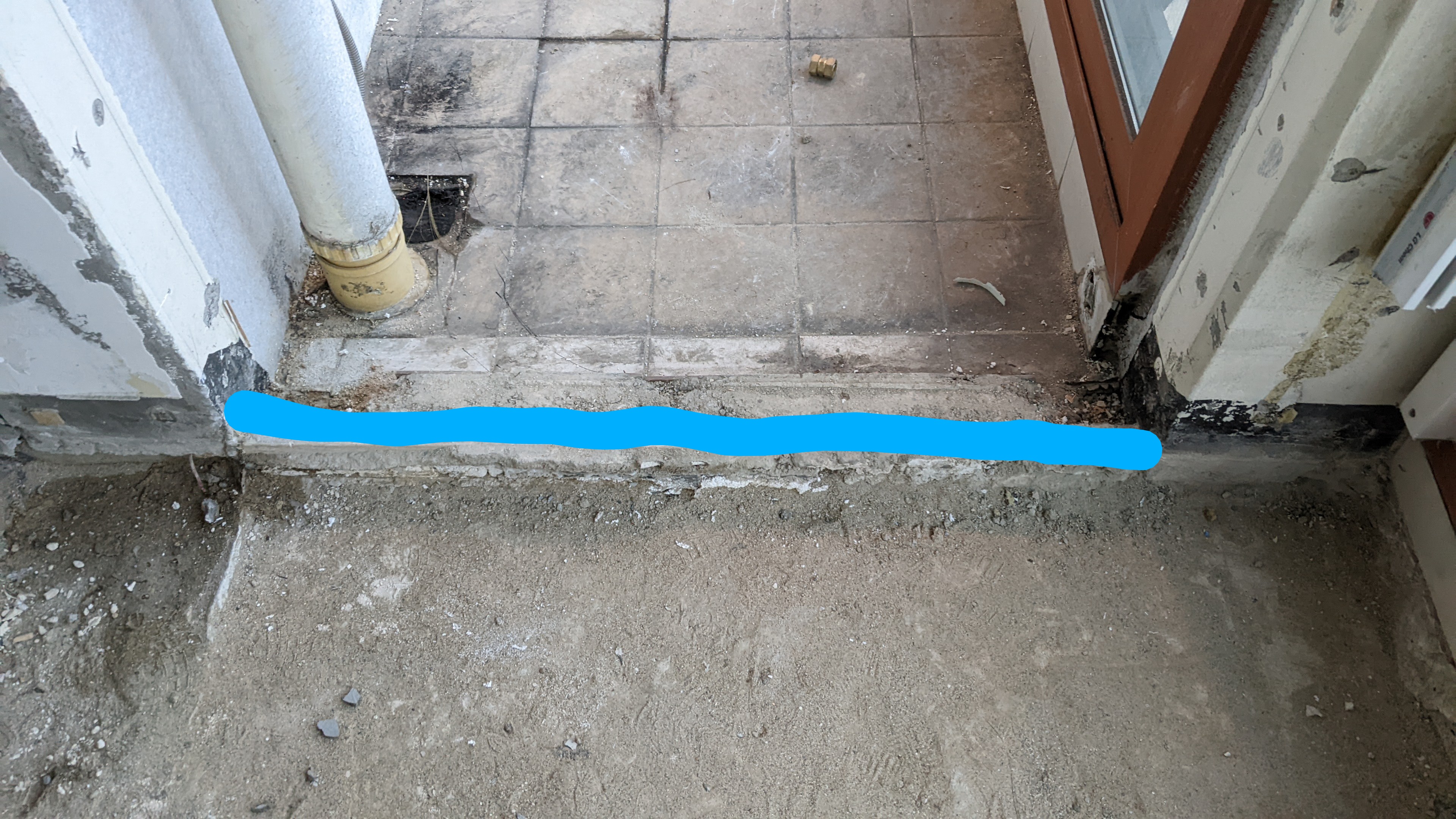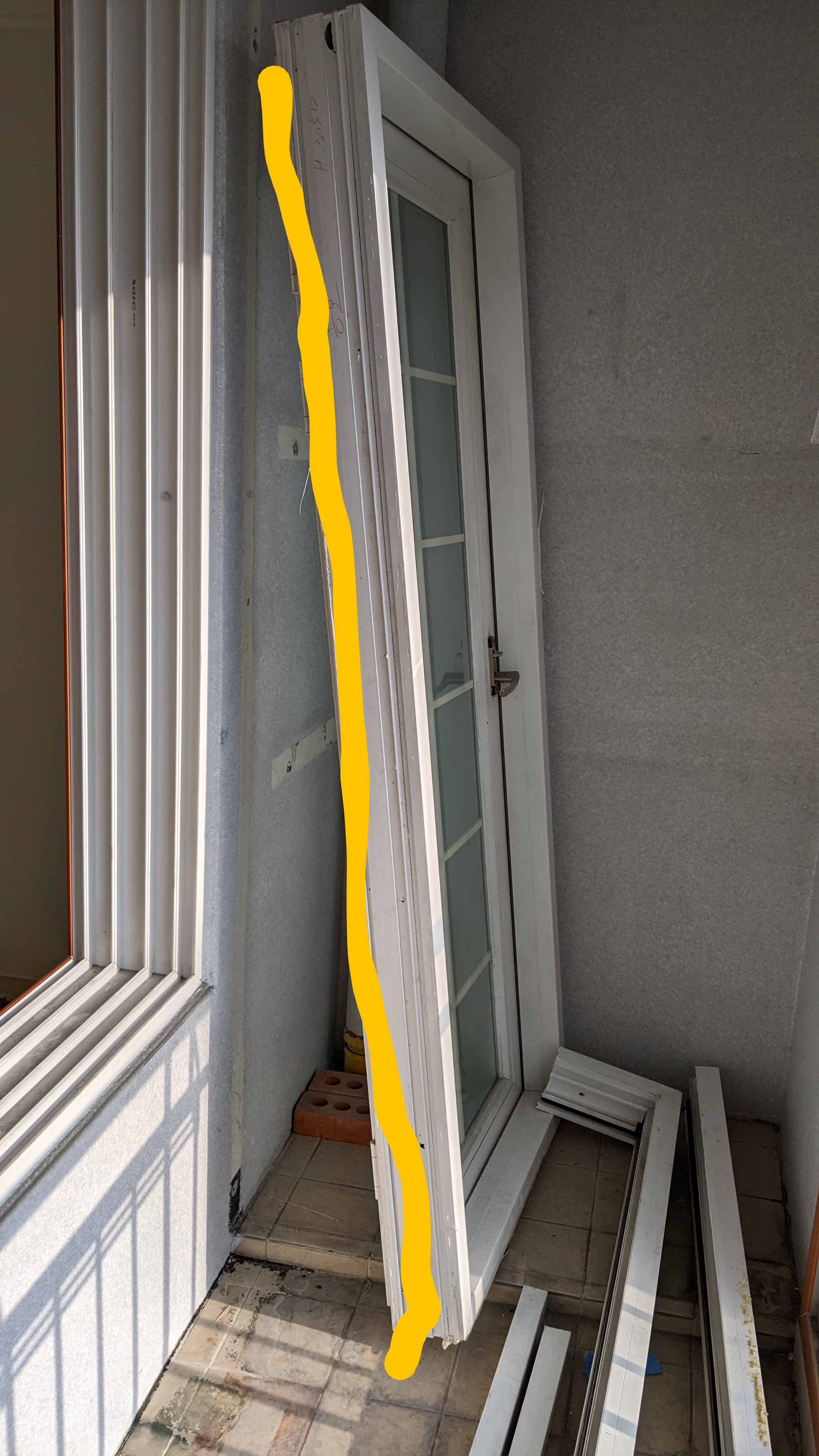 요기 파란색 줄로 된 곳이 기존에 발코니 확장을 했을때 터닝도어를 얹히기 위해 바를 놓은 자리입니다.