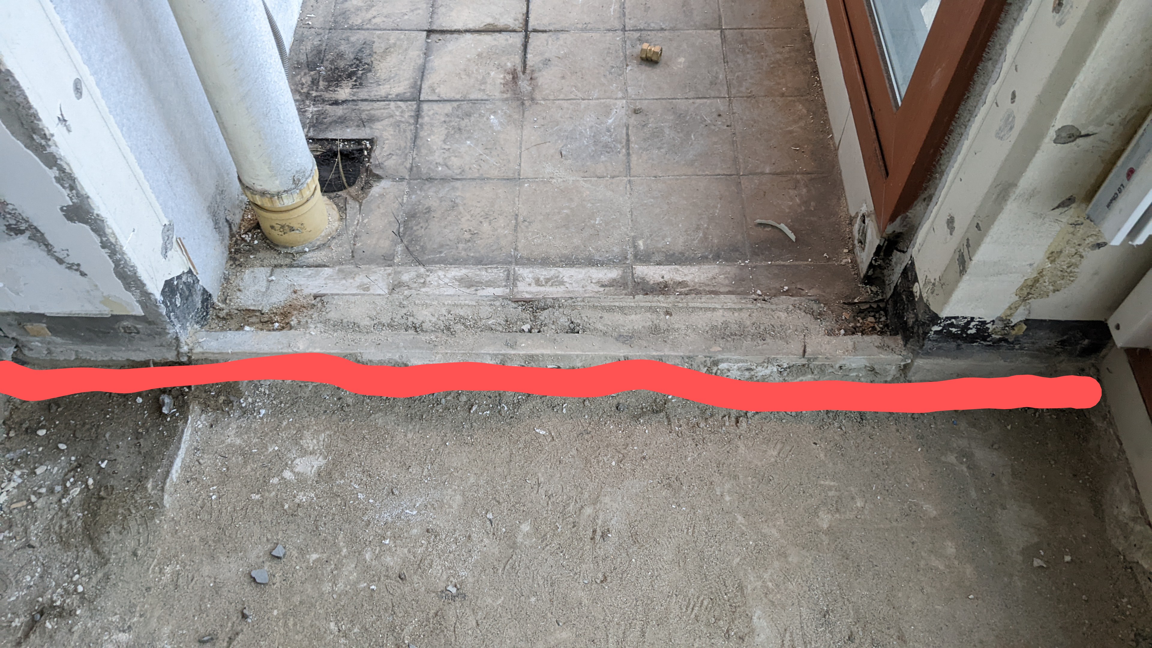 그래서 보강바 바로 앞에 빨간색 선 전부 바닥 단열재를 꺾어 올리고, 터닝도어를 조금 튀어나오기 얹는 방식으로 진행하기로 협의를 해놓은 상황입니다.