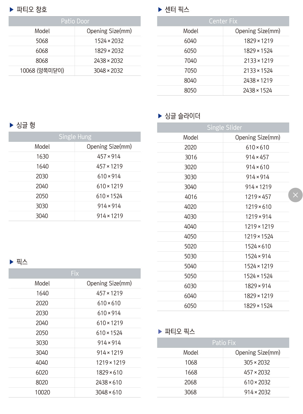 해당 규격은 국내목조주택에 기본이 된, 미국식 창호규격입니다.