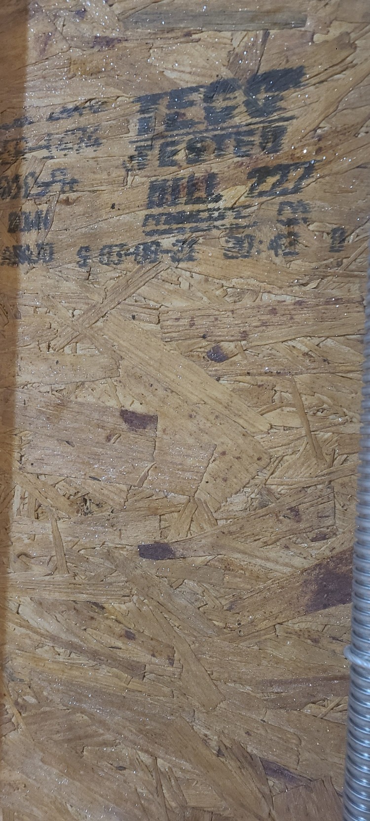 두 번째 사진은 많이 젖은 벽면 osb색과 천정면 osb색 차이를 보시라고 첨부합니다.