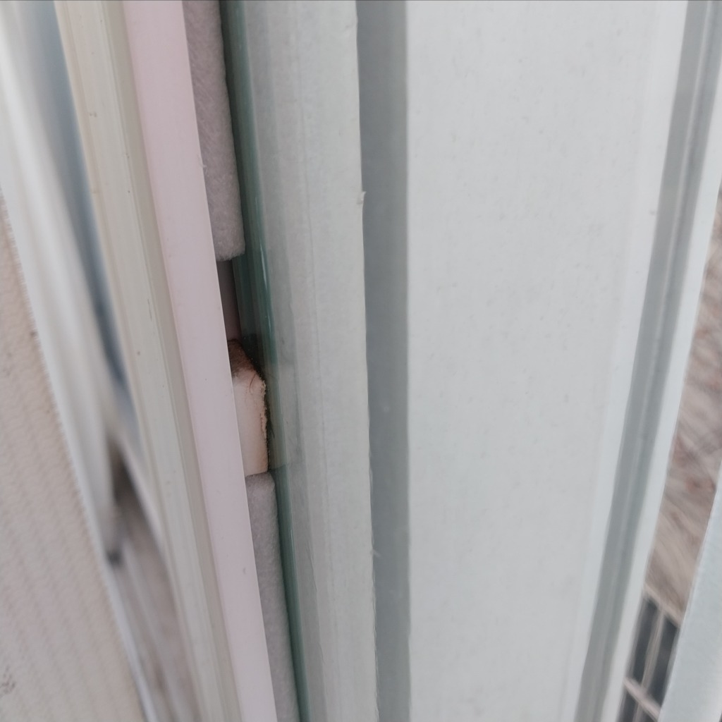 그런데 실리콘을 제거해보니 틀과 유리 사이에 0.5cm 정도의 틈이 있습니다. 창호 유리는 1개입니다.