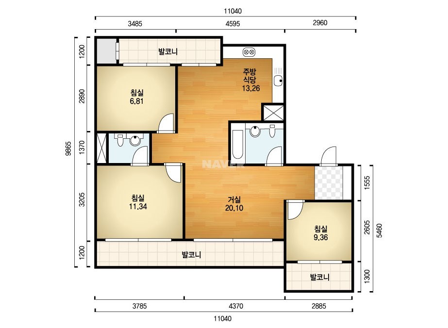 현재 남쪽 작은방에 에어컨을 설치하려고 합니다. 남쪽 작은방 부분 베란다는 확장되어 있는 상태입니다.