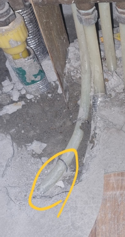 위의 사진은 직선구간을 찾은 다음, 그 배관의 끝(분배기)까지 모두 교체를 하시면 되고, 아래 사진도 더 까내서 직선 구간을 드러내야 합니다.