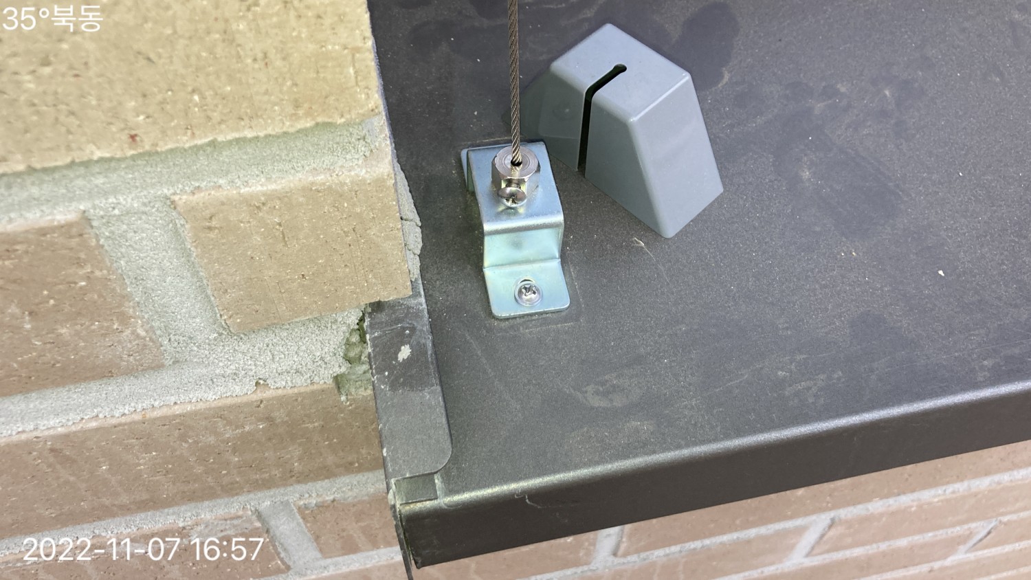 빗물받이 와이어 고정부에 그냥 피스로 조립하였습니다.