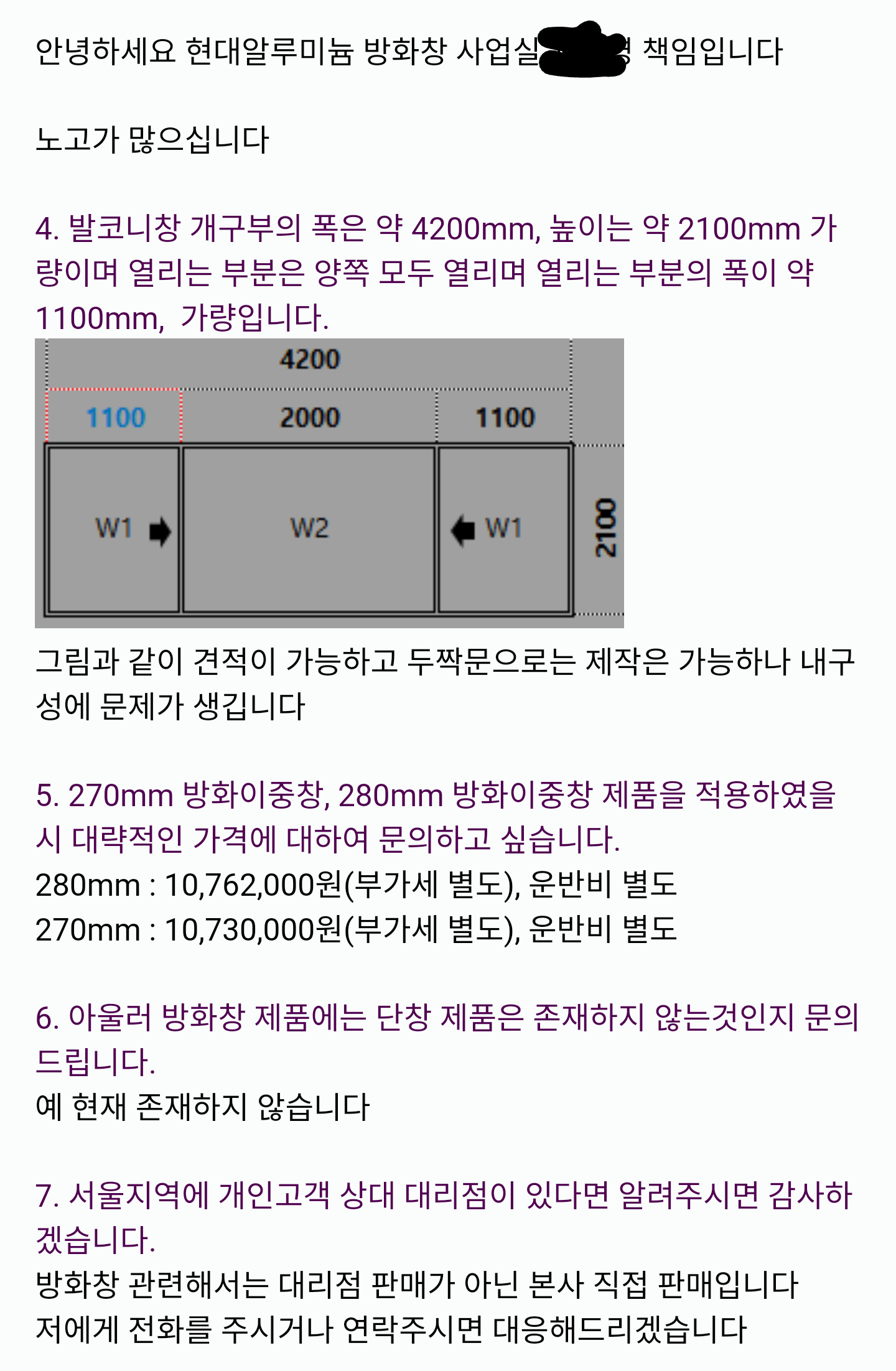 위 질문글에 대하여 부득이 조금 추가질문을 드리려고 합니다. (1번 방화창 항목 관련)