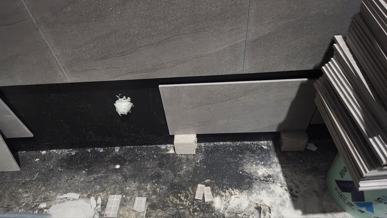 질문자께서 올린 사진을 보면 우레탄 방수층 위에 타일 압착붙임을 했으며, 타일 본드가 뭔가를 묻는 관리자님 질문에 대한 답변은 '세라픽스'였습니다. 제가 알고 있는 세라픽스는 수용성 아크릴계로 물을 사용하는 곳에는 적정하지 않은 접착재료이며, 우레탄 도막방수층 위 압착재로도 적정하지 않을 것으로 추정됩니다.
