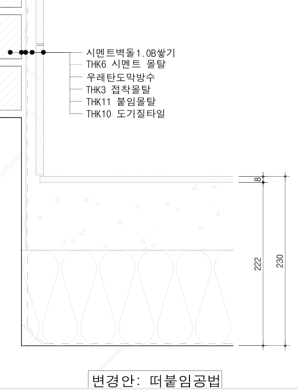 문제는 욕실 벽 도막방수층 위 타일붙임은 두께 조절 때문에 압착시공을 할 수가 없으므로, 말씀하신 우레탄계 또는 변성실리콘계 재료에 의한 압착붙임으로는 두께 조절이 어려울 것 같아서 질문 드립니다.