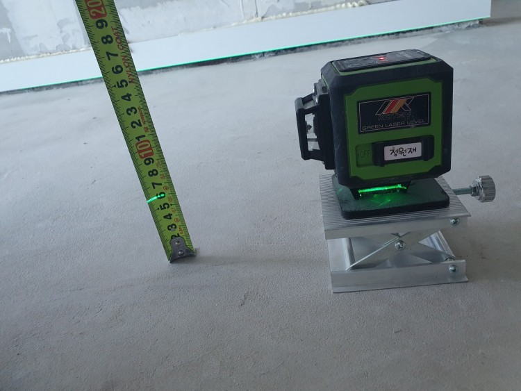 아파트 거실바닥 타일 작업하기 이전 방통이 되어있는 상태입니다. 하지만 바닥이 고르지못하여 높은곳에서 낮은곳까지 60mm이상 레벨이 차이가 납니다.