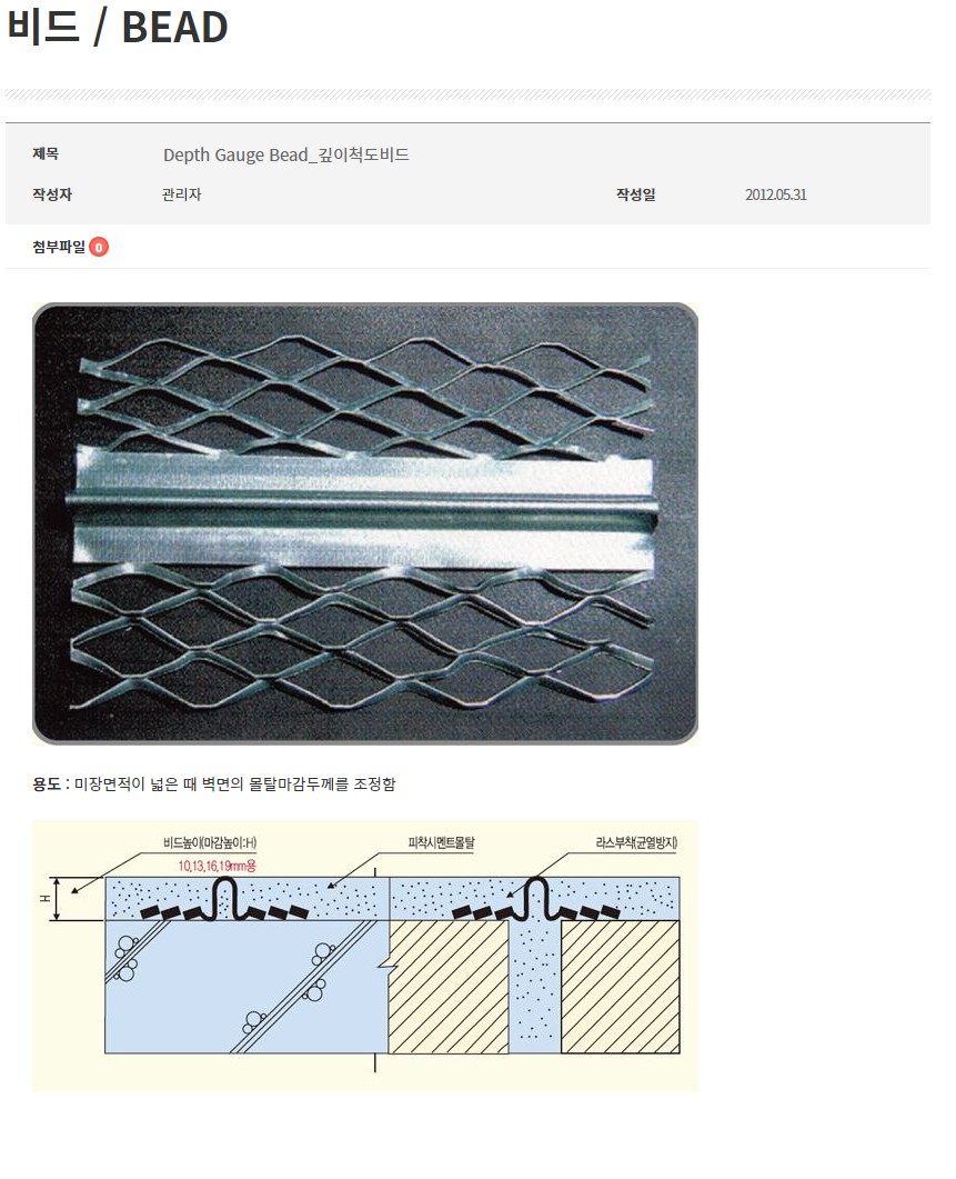 아마도 우리나라 특유의 높은 수준의 손재주로 인해.. 미장을 하셨던 선배들은 이런 부자재 없이도 면을 잘 맞춘 탓 같습니다. 지금은 그런 분도 없고, 저런 부자재도 없고요...