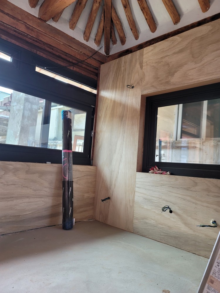 내벽단열재 : 수성연질폼 시공 후 깜박하고 가변형방습지 시공을 못함.
