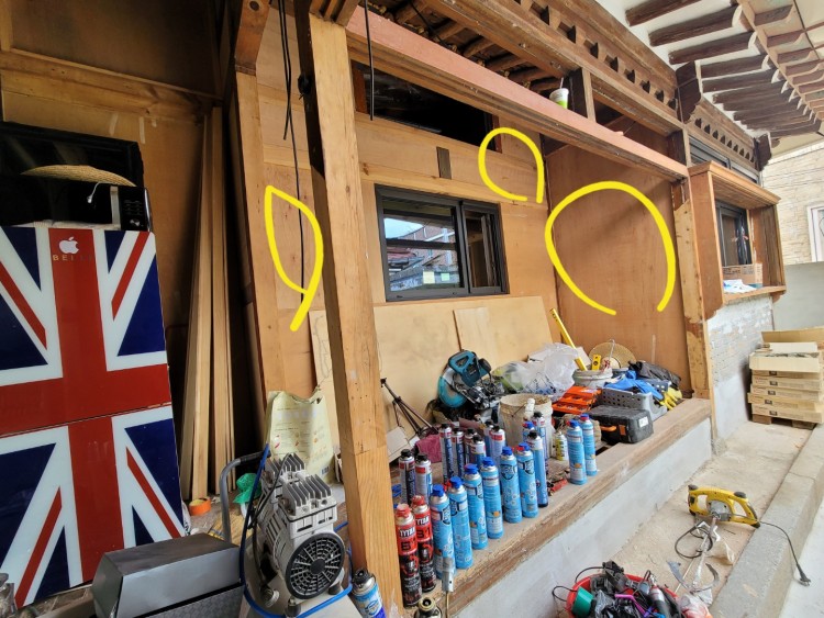 참고사항으로 아트월 시공 부분에  안쪽 문은  나무문으로 시공예정이구요. 비는  안맞으나  문틈사이로 습기는  들어올꺼같네요.
