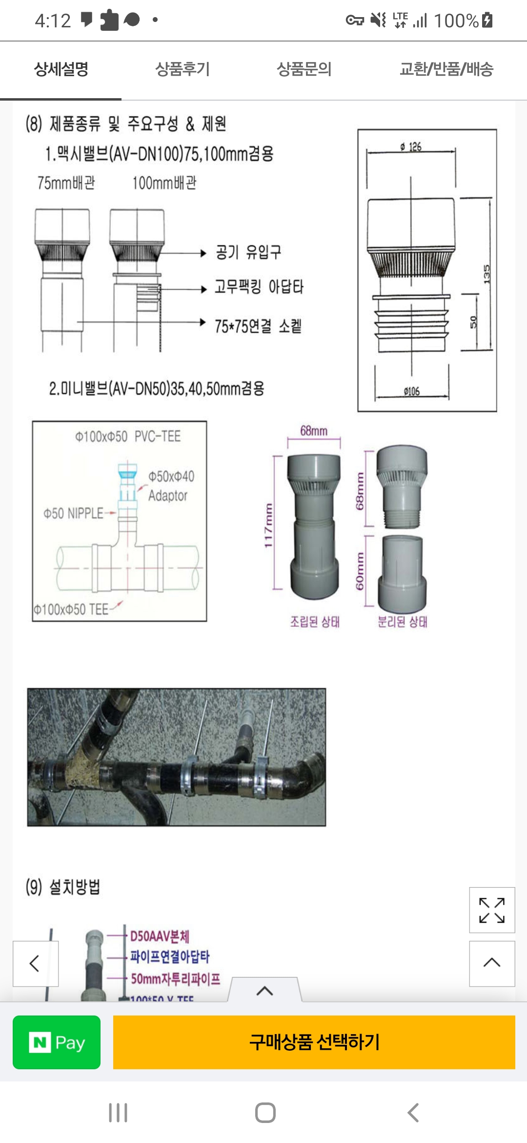 찾아보니 통기밸브가 있던데 이 제품을 이 통기관에 바로 설치해도 괜찮을까요?