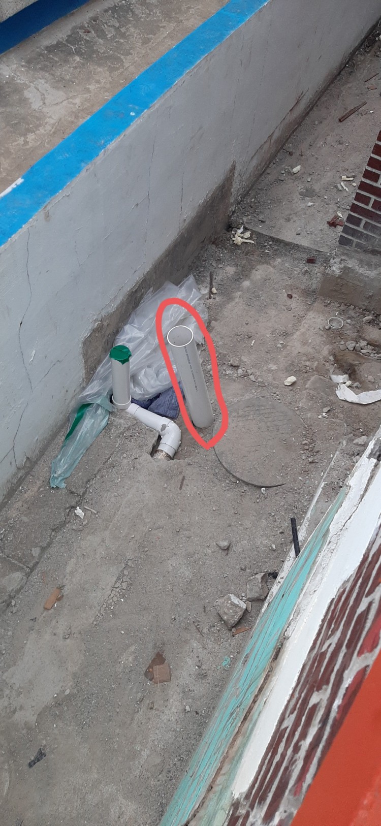 정화조에 가스가 차는 것을 방지하기 위한 통기관입니다. 건물의 옆면을 따라 옥상까지 올리시는게 최선인 것 같습니다.