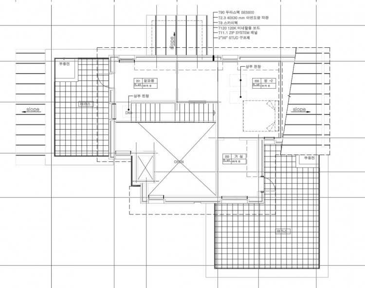 평지붕은 슬라브 다운하고 역전지붕으로 시공합니다.