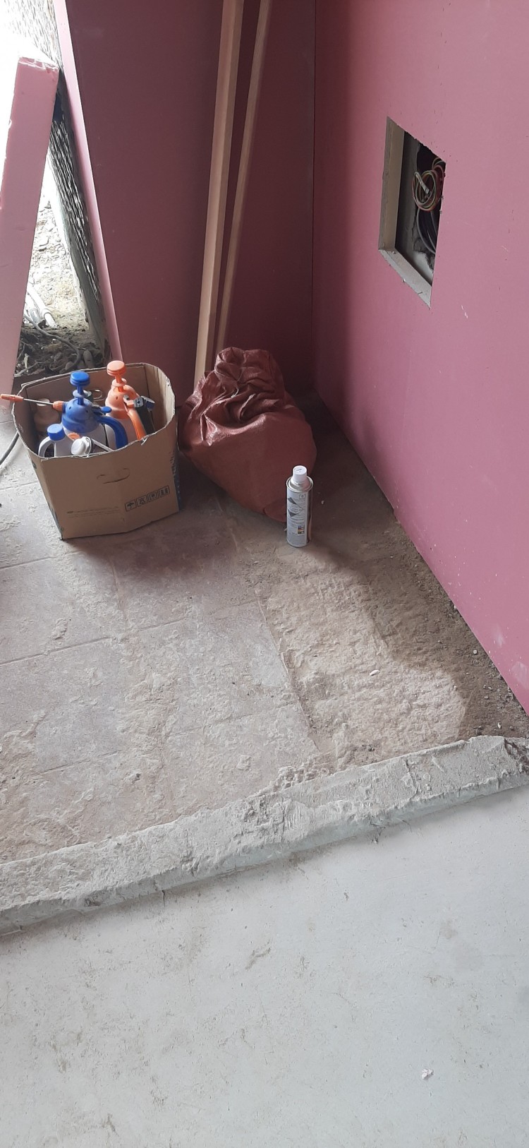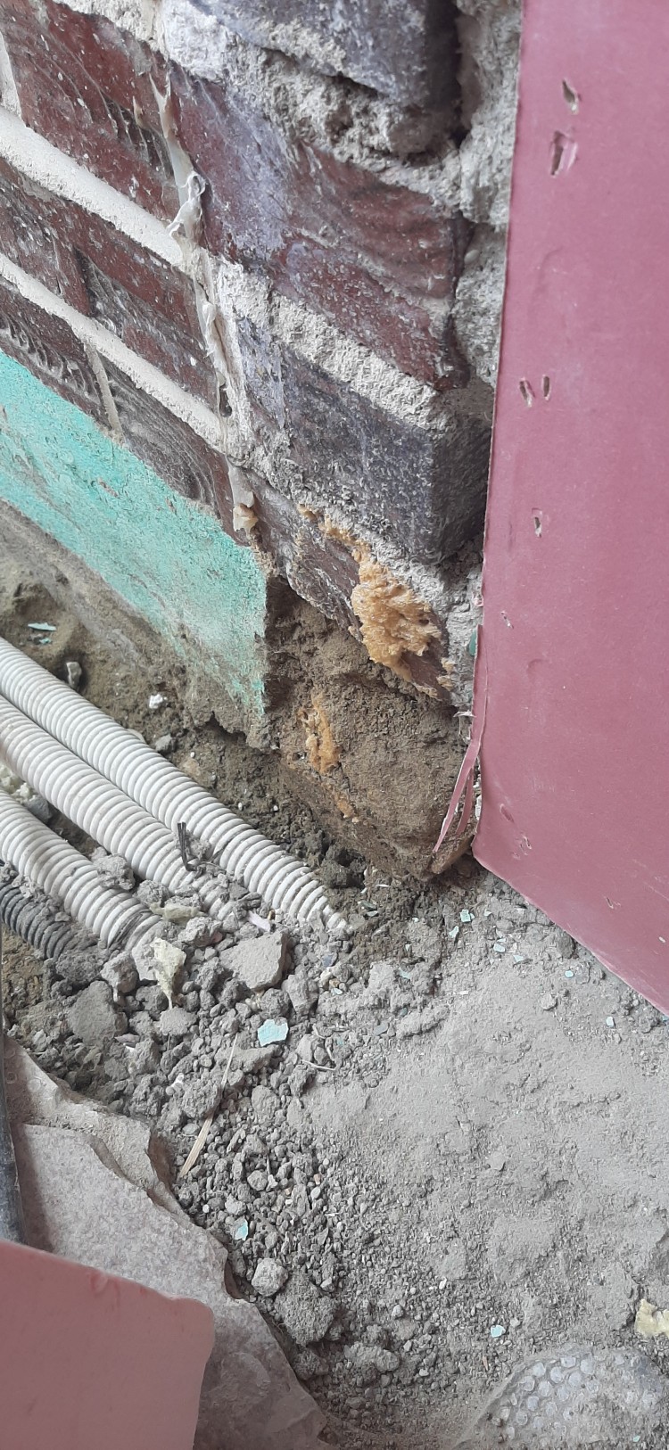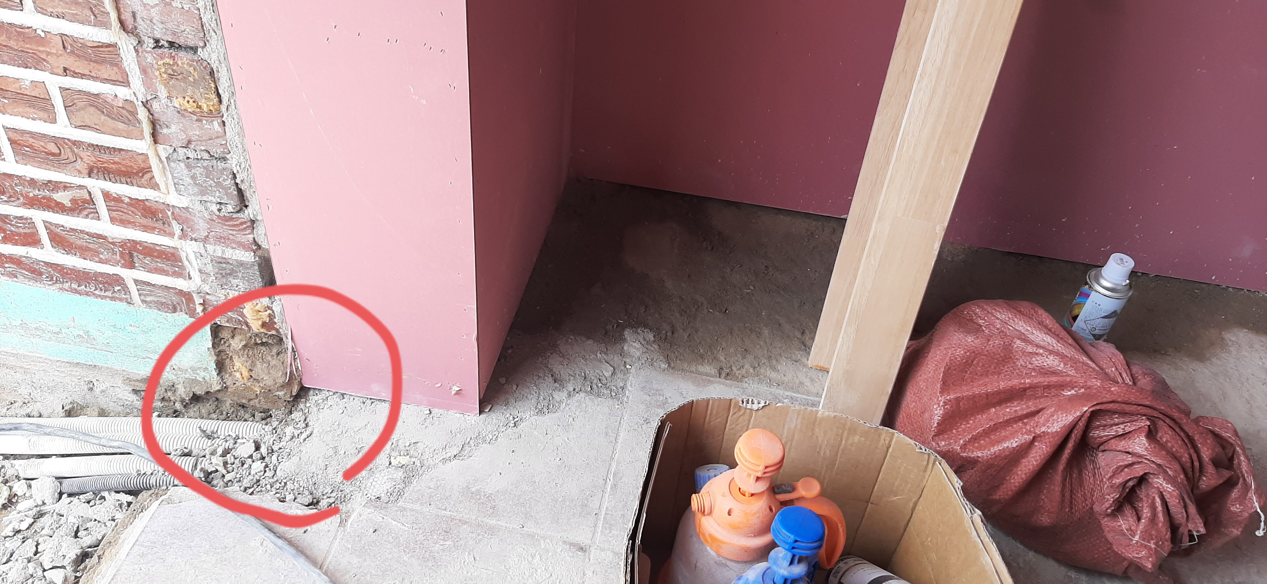 안녕하세요? 주택공사를 하고 있습니다. 비가 온 지 며칠 지났는데 현관쪽과 화장실쪽에 바닥이 일부 살짝 젖어 있습니다. 혹시 몰라 수도관을 잠그어 두었는데도 마르지 않고 이 상태로 있습니다.