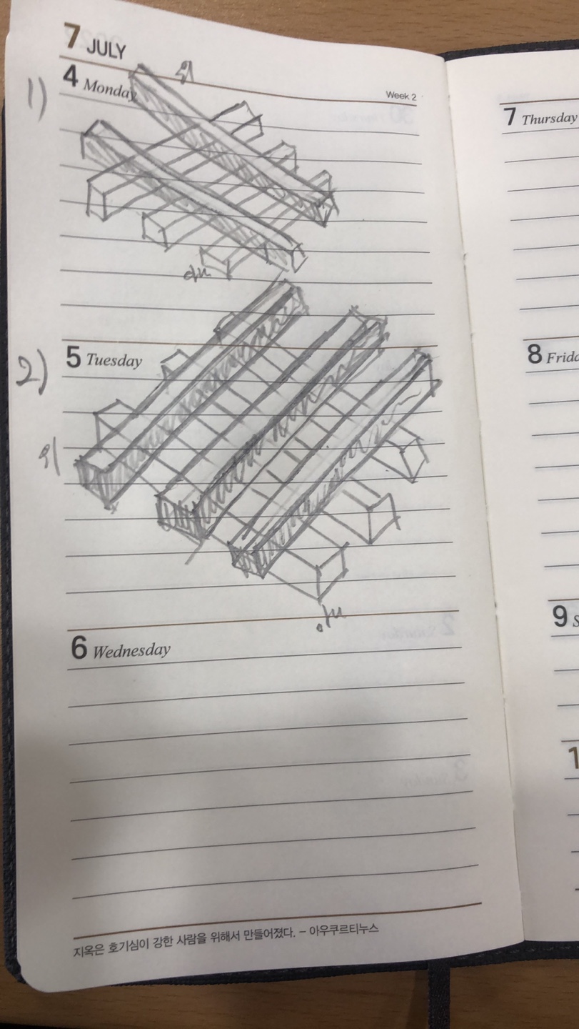 1) 가로방향으로 부재를 대고 그 위에 또 세로방향으로 부재를 대는 것