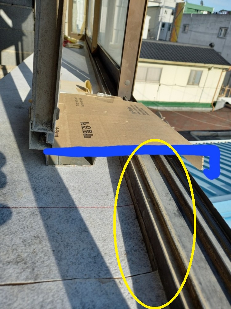 빗물받이 시공하기전에 새로 만든 개구부 바닥면과 창호철거한 벽체사이에 공간이 생기는데 이곳을 우레탄실리콘으로 메꿔라는 뜻인지요?
