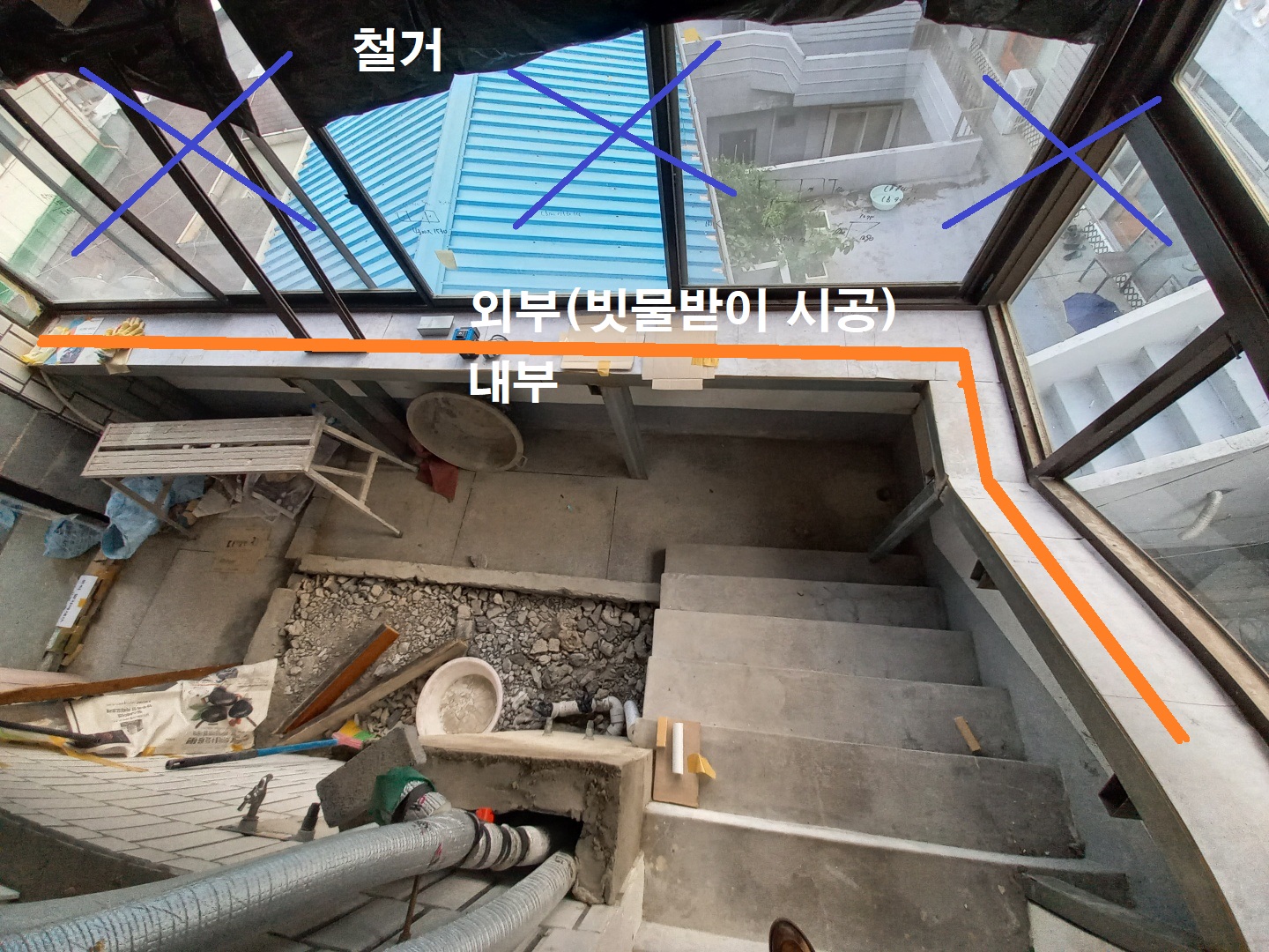 => 기존 철로 된 창틀은 제거한 후 PVC단창을 내부로 많이 들여서 창호를 시공할 예정입니다