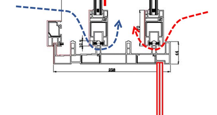 노란줄 기준으로 창호가 시공되며 왼쪽은 내부 / 외부 로 나눠집니다