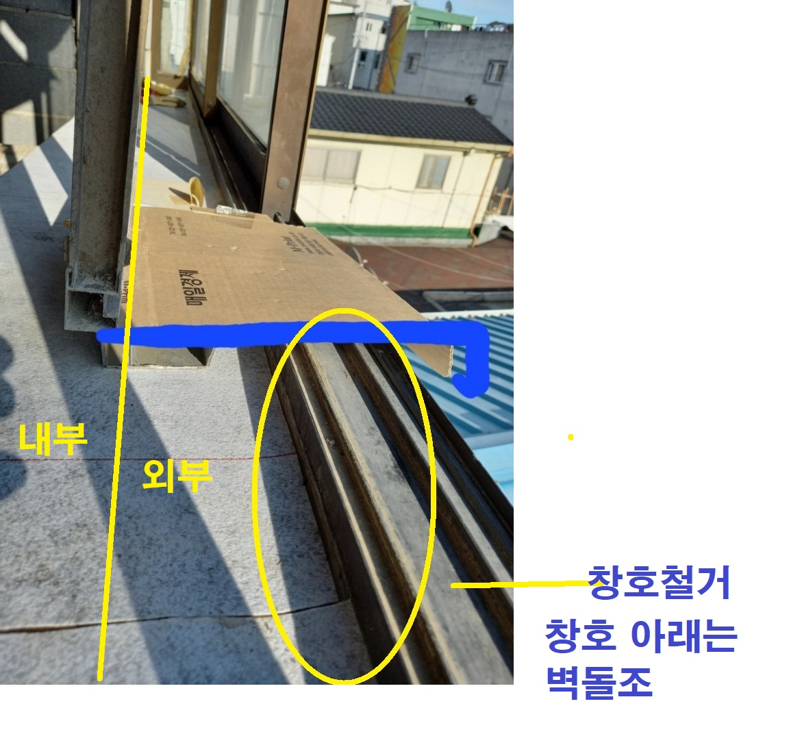 아래 창호를 철거하고 창호를 안으로 들여서 시공할 예정입니다