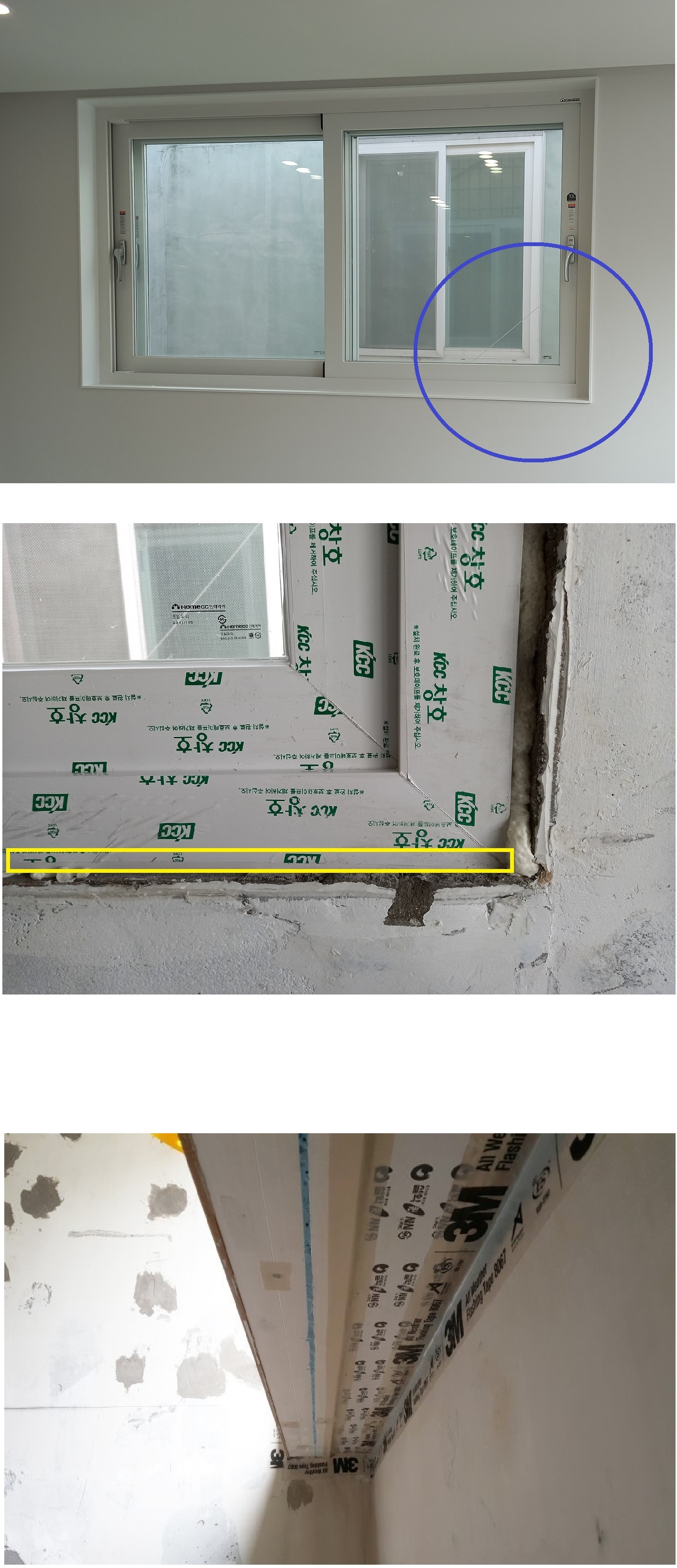 3번째 사진처럼 창호를 내부로 들여서 시공한후 창호 아랫부분을 타고 ㄱ자로 기밀 테이프를 붙이고자합니다