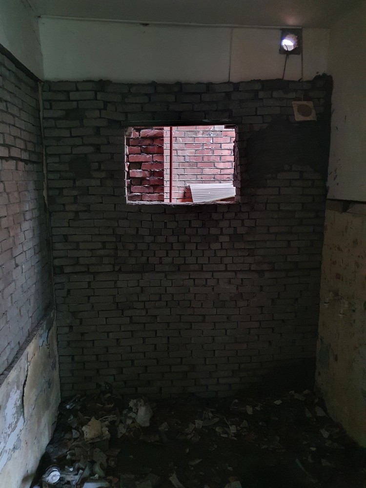 창문쪽 0.5b / 왼쪽 벽면 0.5b / 오른쪽 모서리 0.5b 조적했고요.