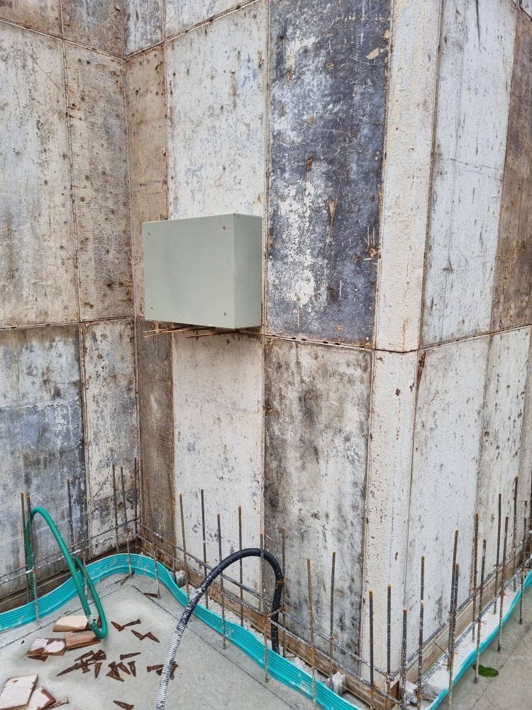 다만 타설 후 분전함의 표면에 콘크리트가 묻어서, 철판면인지 시각적으로 구분되지 않을 수도 있습니다. 그럴 때는 유성펜으로 해당 부위를 표시해 주시면 되세요.