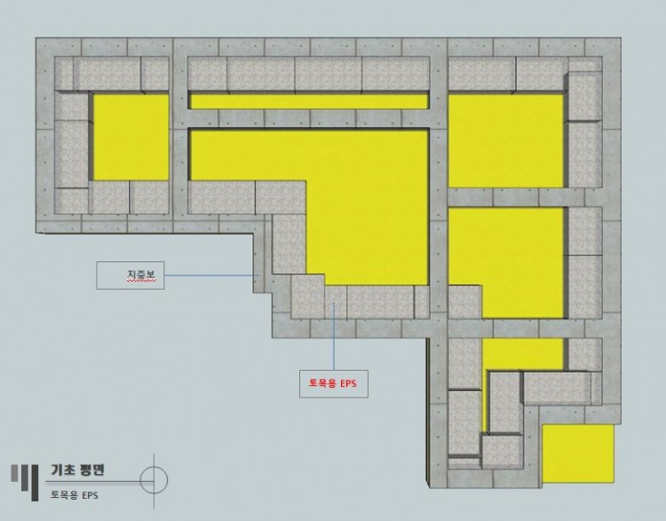 이것은 토목용 EPS를 기초 하단에 전부 깔지 말고 외벽체에 접한 지중보에만 적용하라는 의미인지요?(두 번째 그림)